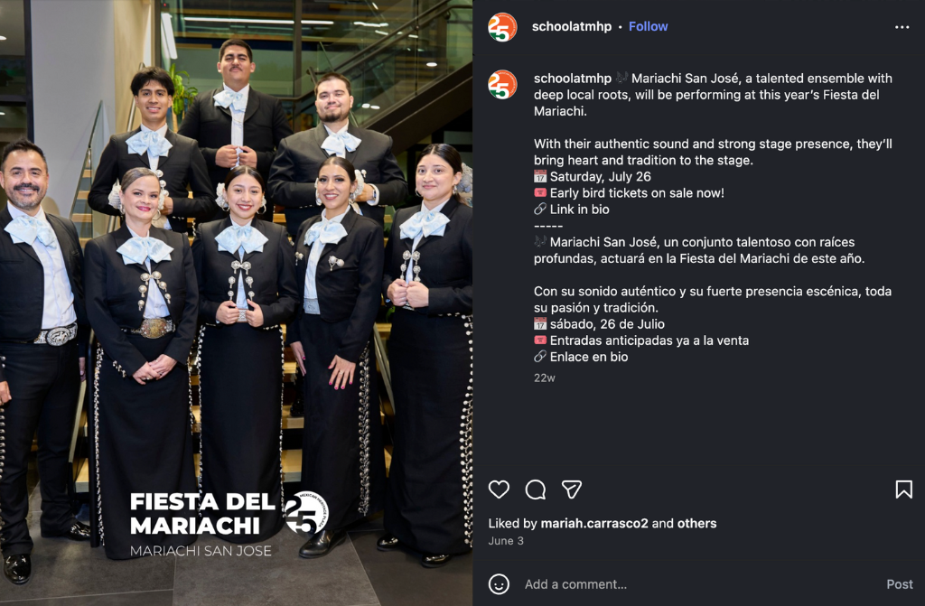 Hosted by the School of Arts and Culture (SOAC), Fiesta del Mariachi embodies the organization’s mission to serve as a cultural hub for East San José, promoting artistic expression, education, and community connection. For this event, I created engaging digital content across multiple platforms, including social media posts, reels, newsletters, and stories, designed to capture the energy of the celebration and highlight the artists and community behind it.