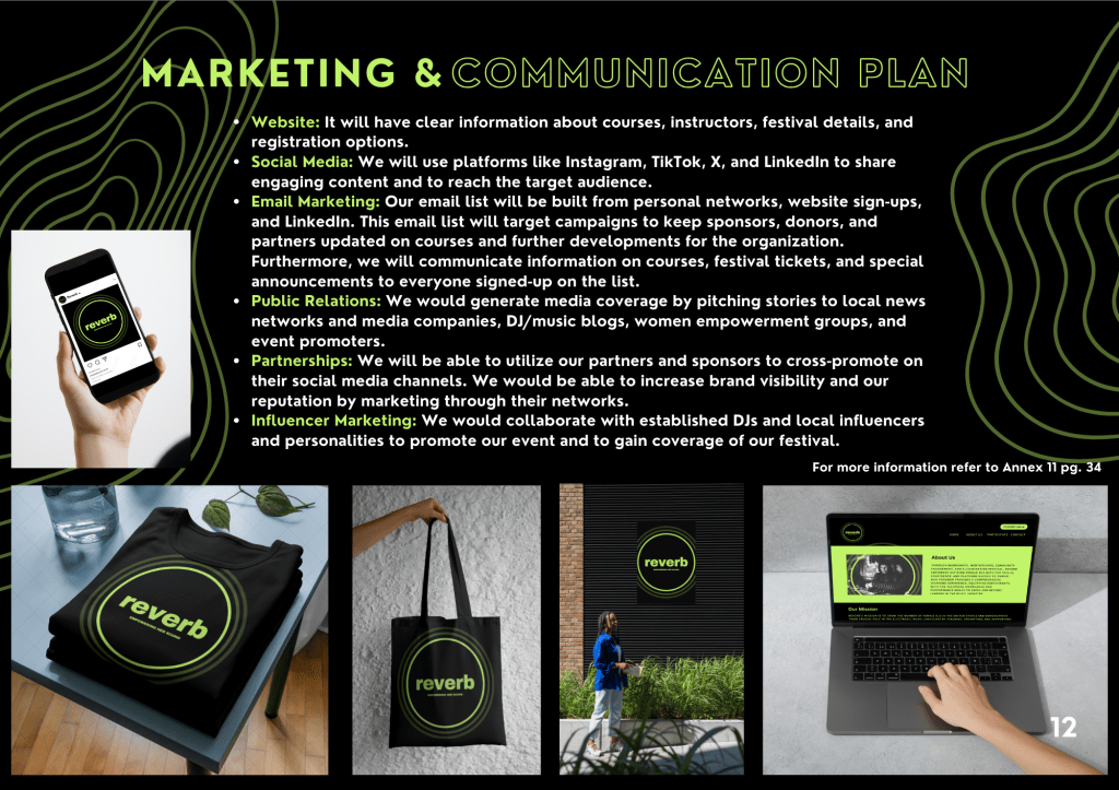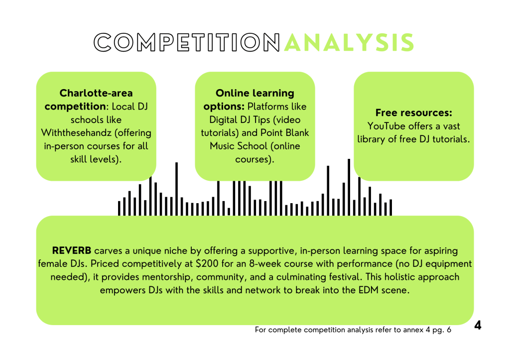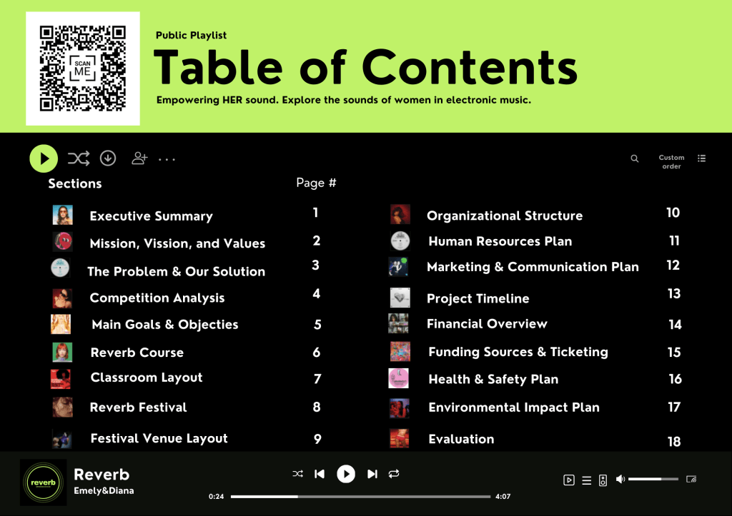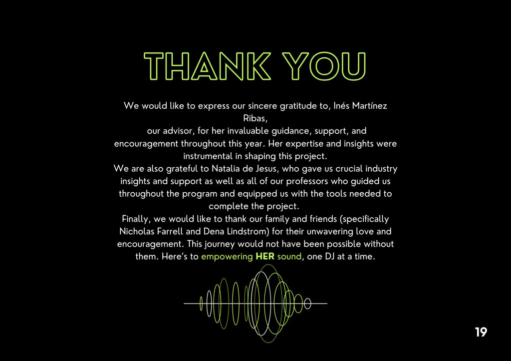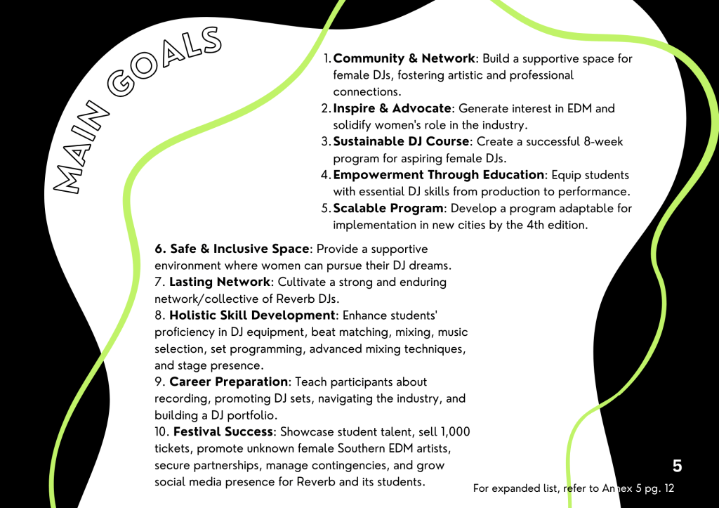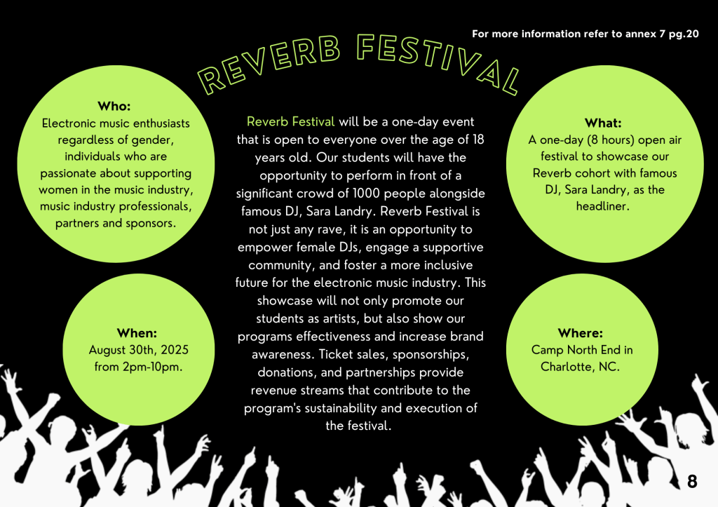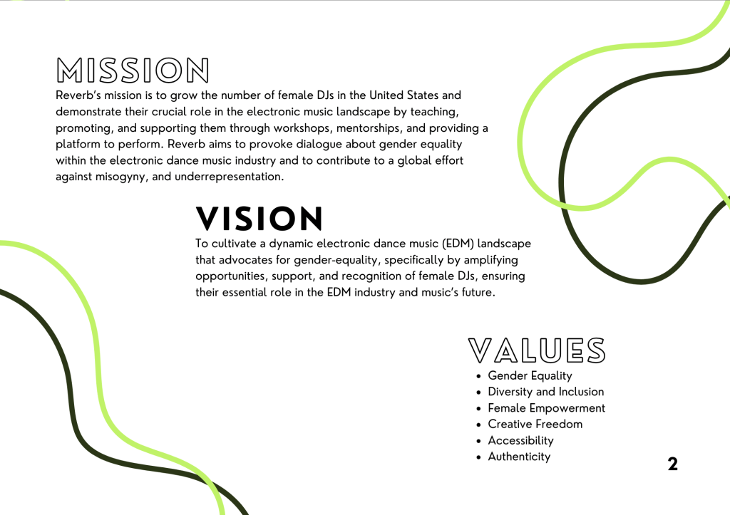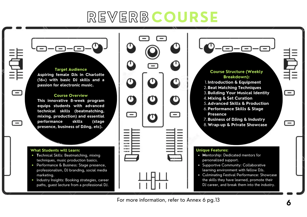 Reverb is an 8-week educational initiative I developed for my master’s senior thesis, designed to address the underrepresentation of women in electronic dance music. Built by women, for women, the program provides hands-on DJ training, mentorship, and community-building opportunities led entirely by female instructors. The course culminates in a public festival-style showcase, where each participant performs a live set to demonstrate her skills and celebrate her growth. My portfolio includes the comprehensive project book, which details the branding, marketing strategy, and full logistics behind Reverb’s creation and execution.