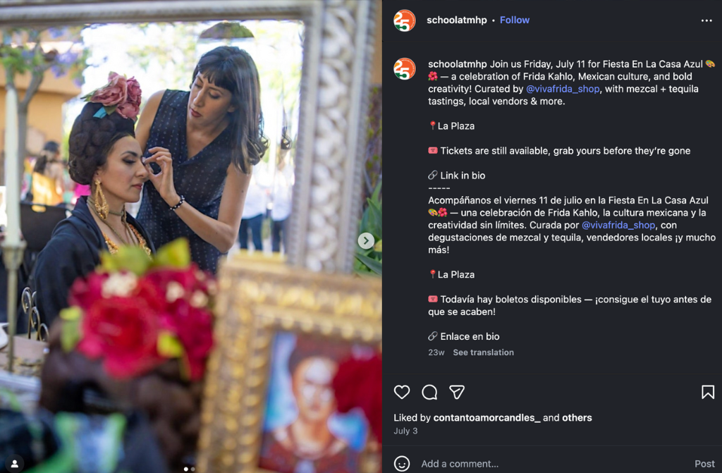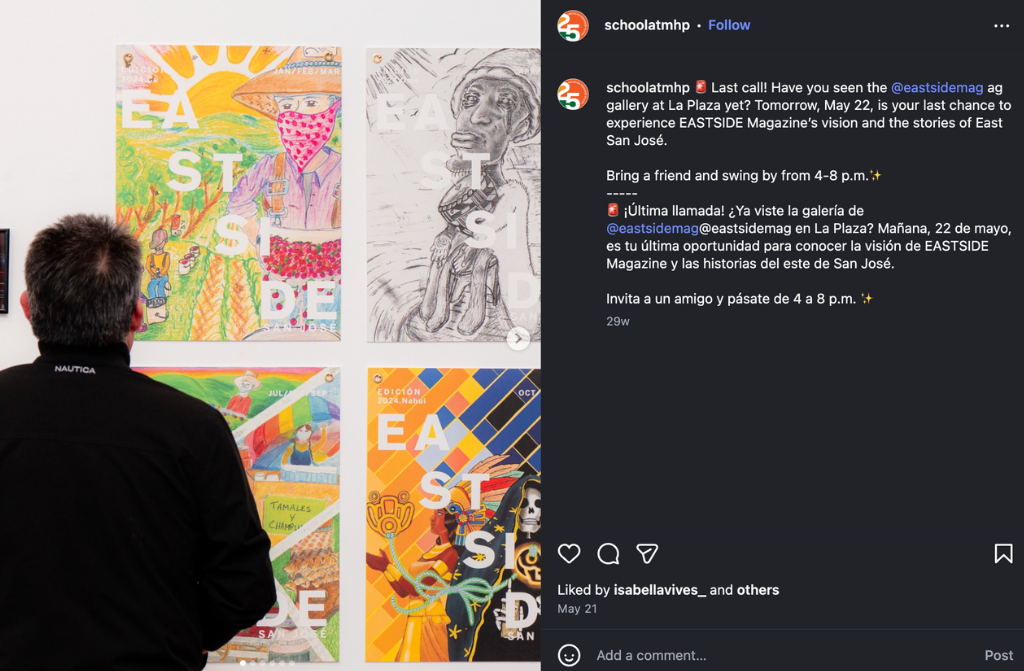 For the School of Arts and Culture at the Mexican Heritage Plaza, I create digital marketing content that supports community-centered arts and cultural programming rooted in East San José. My work includes developing Instagram and Facebook posts and crafting newsletters that promote events, and elevate community voices.